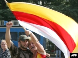 Цхинвали тұрғындары Ресейдің Оңтүстік Осетияның тәуелсіздігін мойындаған күнін тойлауда, 26 тамыз, 2008.