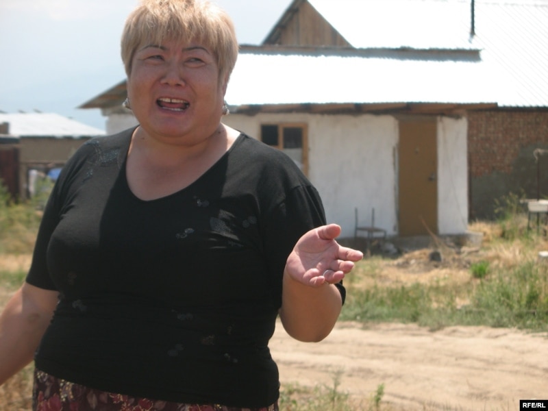 Сағынай Ахметбекқызы өз баспанасы тұрған жер телімінің заңды құжаттары болғанын айтады. Қарасу, 15 шілде 2009 жыл.