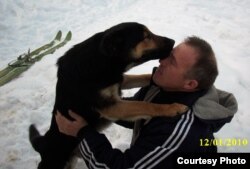 Текелі қаласының тұрғыны Ренат Минибаев итімен бірге. Жеке мұрағаттағы сурет. Алматы облысы, 12 қаңтар 2010 жыл.