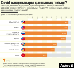 – Вакцинаны шығарудағы асығыстық біраз алаңдаушылық туғызғаны рас. Бірақ The Lancet журналында жарияланған жаңа деректер күмәнді сейілтуге септеседі. Ресей өз вакцинасына сенді, сол сенімі ақталған сияқты, – дейді Ұлыбританиядағы Лестер университетінің вирусологы Джулиан Танг.