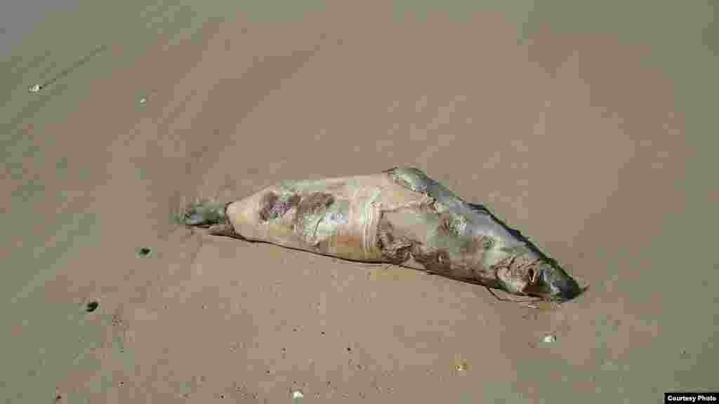 Маңғыстау облысы Түпқараған ауданы Баутино кенті маңында Каспий теңізінің жағасына шығып қалған алты өлі итбалық табылды. Азаттық сайтының оқырманы Асқар Айдарбай жолдаған суреттер. 27 сәуір 2013 жыл.