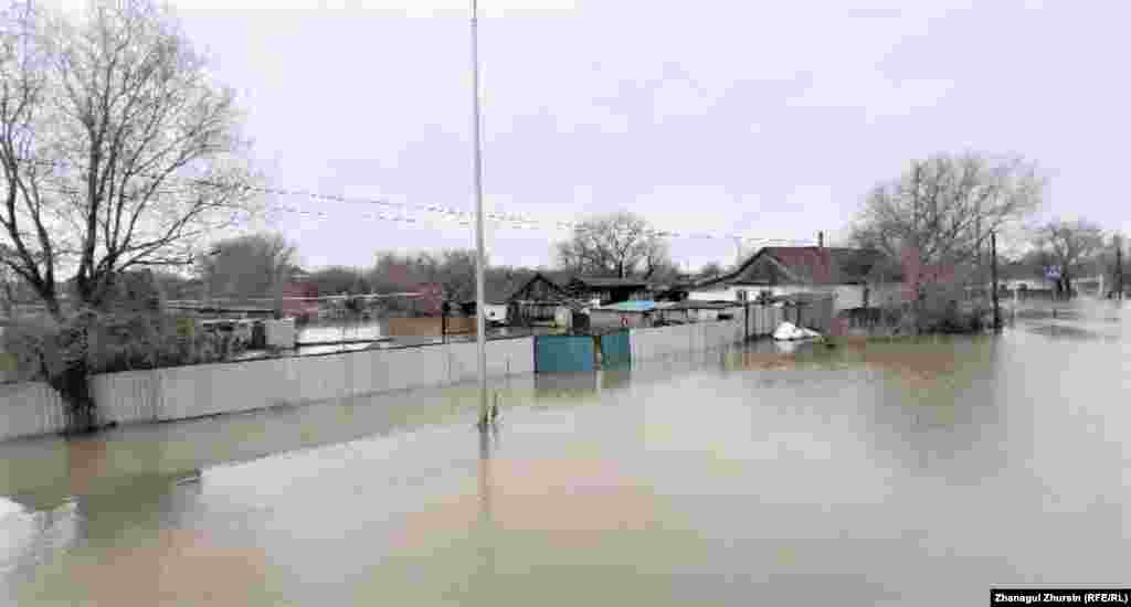 Қобда ауылында суда қалған тұрғын үйлер. Ақтөбе облысы, 14 наурыз, 2023 жыл.