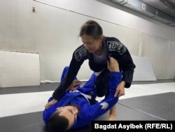 Алматының іргесіндегі Bars Almaty Checkmat залы. Бұл жер бразилиялық джиу-джитсуды үйретеді. Жаттықтырушы Думан Жұмаділов көшеде біреу тиіссе, қалай қорғану керегін түсіндіріп жатыр: