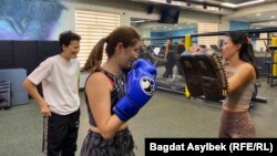 – Енді аяқпен, – дейді бесінші қыз аяғын көтеріп. Бұл – қыздарды бокс пен кикбоксингіге үйретіп жүрген жаттықтырушы Мария Макатревич. Қыздар жаттықтырушының көрсеткенін айнытпай қайталады.
